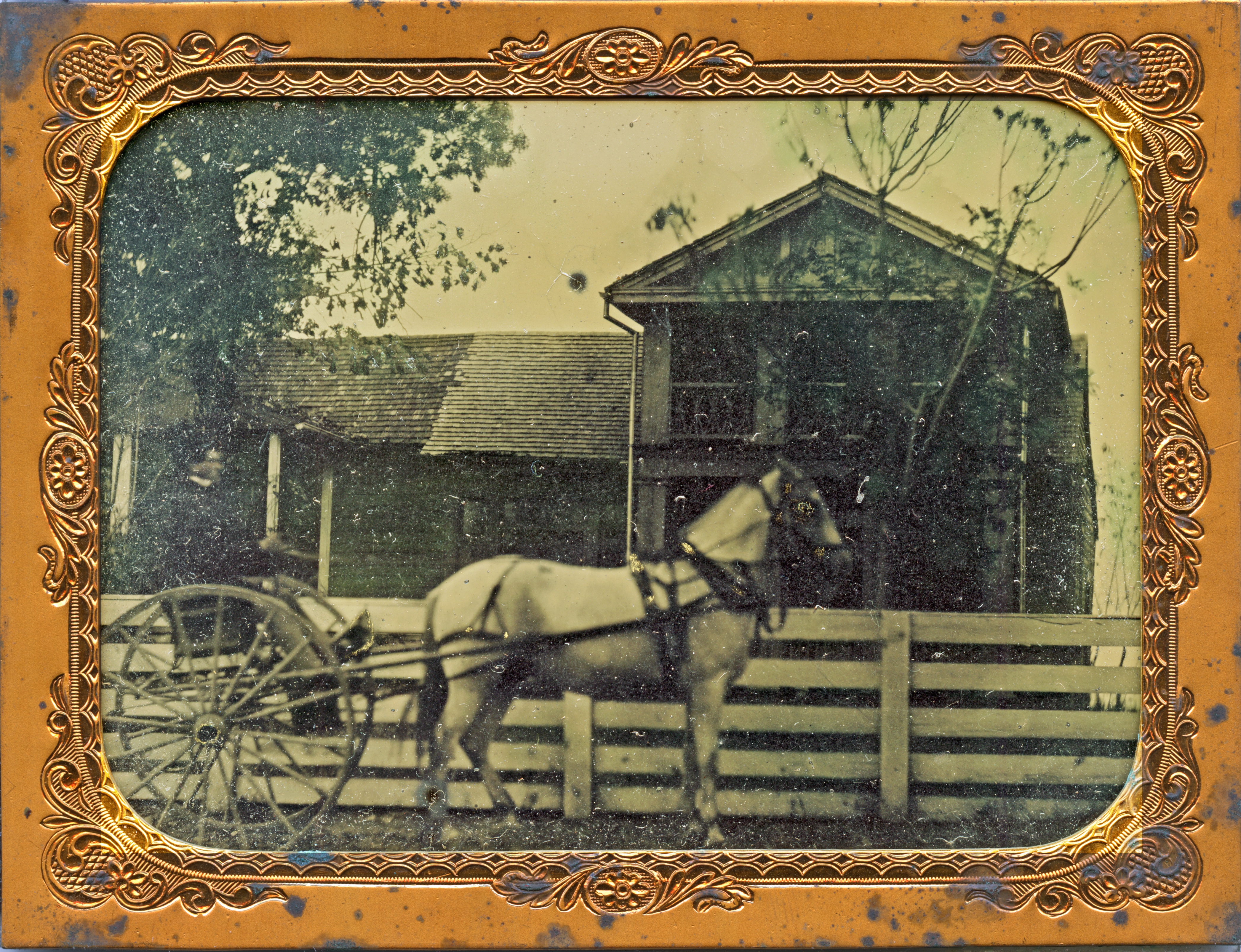 In conclusion, shown here are several versions of the image, one of which I have edited to bring out some details. Taking outdoor images at this time was very difficult, and this image was underexposed which is why it is so dark. There are some interesting things to point out, however. For one, Dr. Boyden is shown on a gig or sulky – a carriage designed to be pulled by one horse, and usually made for one rider. Also, if you look at the details of the house, you will see that it has gutters/downspouts visible. There may be some other things you will see, I pick up some new detail each time I look at it. Enjoy!